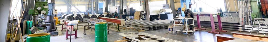 敷地面積 3,060㎡ 油圧プレス 500t 〃 50t ベンディングロール t32×W3000 〃 t6×W3150 〃 t6×W3000 シャーリングマシーン t6×W2400 CNC旋盤 LB4000EXⅡ(OKUMA) 〃 LB-15C(OKUMA) 〃 SL-35(MORI SEIKI) 汎用旋盤 ラジアルボール盤 直立ボール盤 卓上ボール盤 鋸盤 Tigクランプシ-マー 自動溶接機 500A 半自動Mig溶接機 400A スタッドアーク溶接機 1000A ブローチ(真円修正)引抜機 W3000 溶接部歪自動修正機 ステンレスロール研磨機 W4000 天井クレーン 4.8t 2 台 電気チェーンブロック式ローヘッドクレーン 490kg 計 8 台 天井クレーン(倉庫棟) 2.8t 2 台 アーク溶接機・CO2溶接機・TIG溶接機 各複数台 |